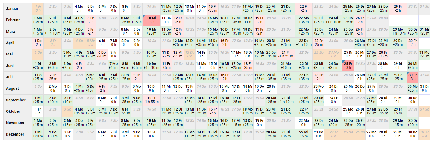 Kalenderansicht der Überstunden